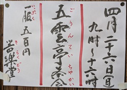 お茶席前売り券 3,300円(お茶席 三席分 + 会記)